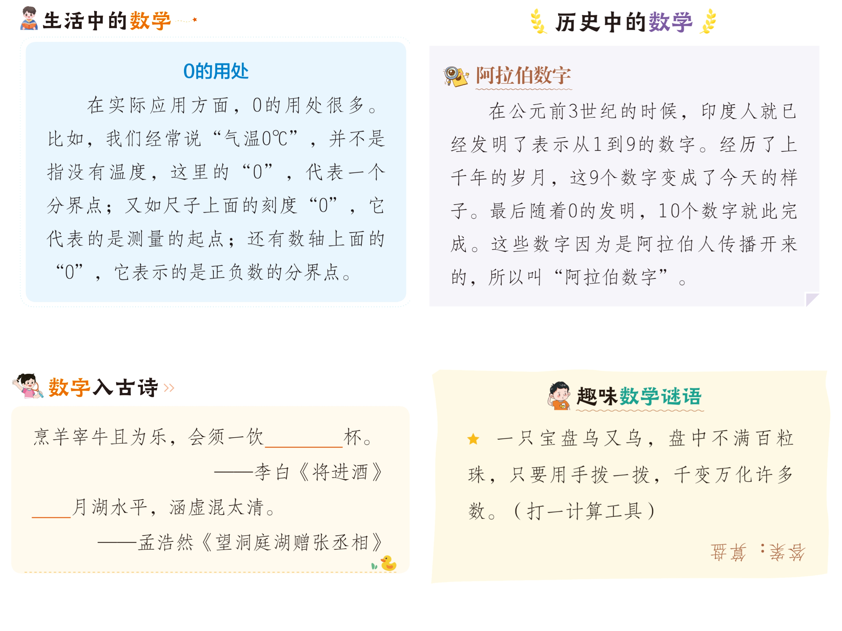这里有多种趣味小栏目,帮助你拓宽知识面,提升学习兴趣,体会数学的新奇有趣。